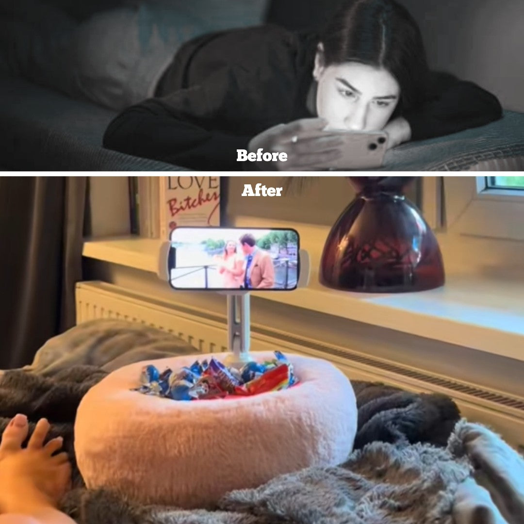 "I can’t believe how much I love this! No more phone dropping on my face, and it’s so cute and functional. Movie nights are so much better now!" 🛋️✨