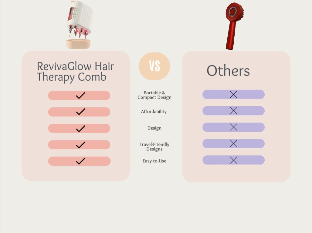 "I've struggled with thinning hair for years, but the mini RevivaGlow Hair Therapy Comb changed everything! 🌟After just a few weeks, my hair feels fuller, and my scalp is healthier. The LED light therapy and soothing massage make it a mini spa treatment every time. 💆♀️ I love how compact it is perfect for on-the-go!"